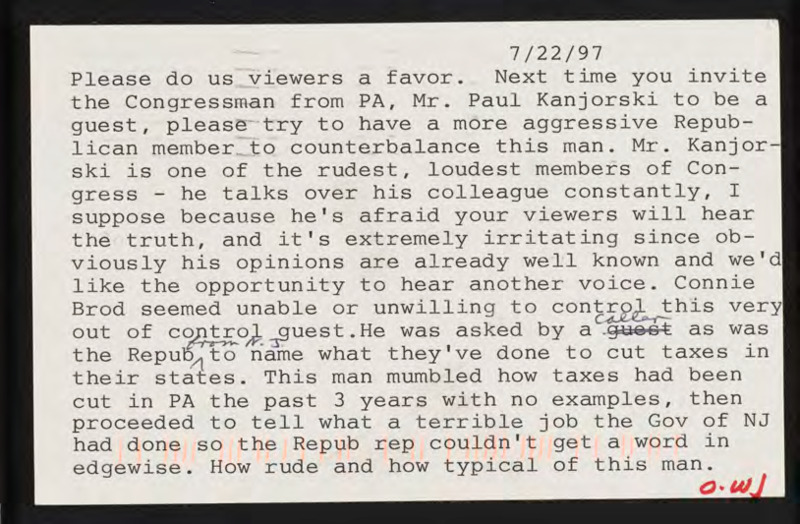 Letter to C-SPAN, 1997-07-22; 76107