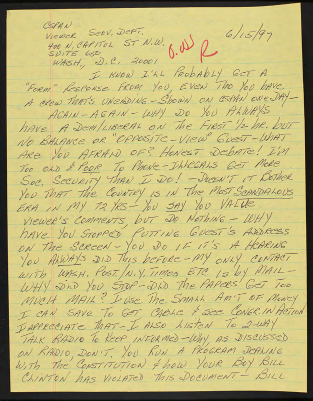 Letter to C-SPAN, 1997-06-15; 85205
