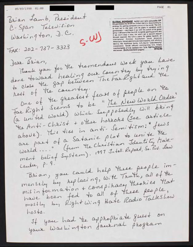 Discusses conspiracy theories and antisemitism surrounding the concept of the "New World Order" and suggests doing a show to offer factual information, then gives a possible name for a reporter to discuss the topic.