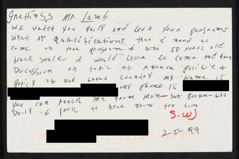Letter to C-SPAN, 1999-02-05; 30413