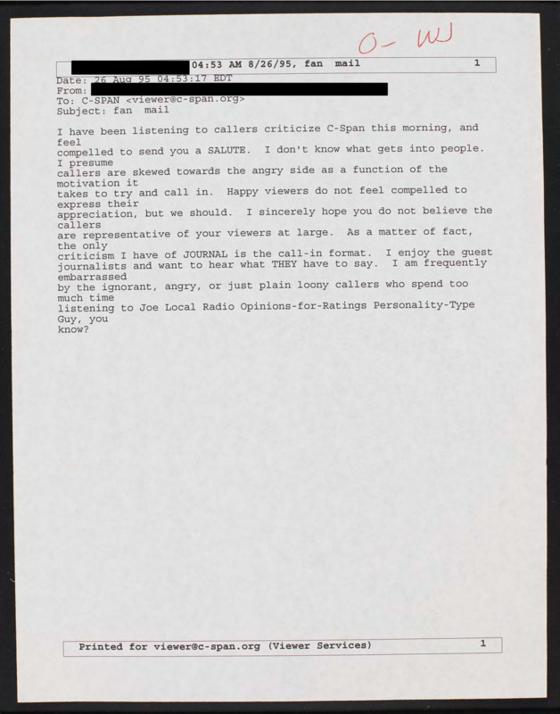 Defends C-SPAN against criticism and expresses their preference for the commentator on Washington Journal, rather than the call-in portion.