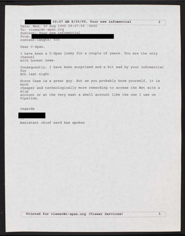 Expresses disappointment in what they felt was unwarranted publicity given for AOL.