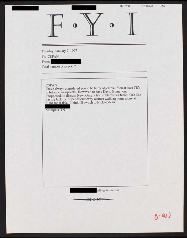 Letter to C-SPAN, 1997-01-07
