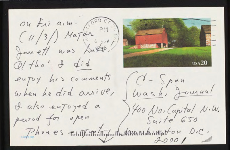 Criticizes a C-SPAN guest for arriving late and not letting people talk