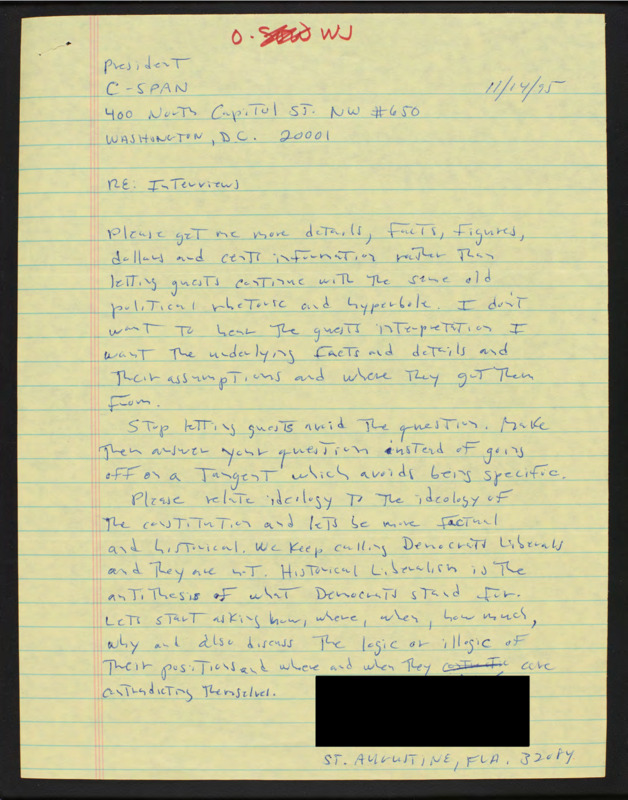 Letter to C-SPAN, 1995-11-19; 72653