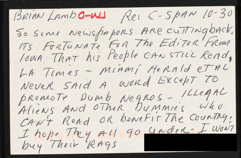 Insults newspaper organizations who allegedly promote racial minorities, immigrants, and others.