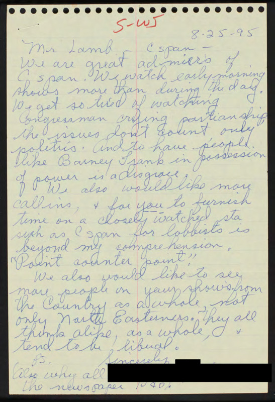 Praises C-SPAN and asks for more call-ins and a wider representation of the country on their programs.