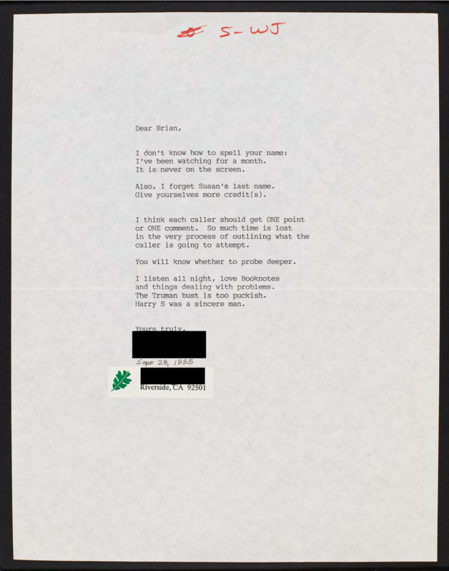 Letter to C-SPAN, 1995-08-29; 93940