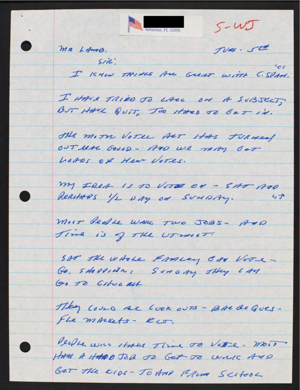 Discusses the Motor Voter Act and hopes it changes the way people vote.