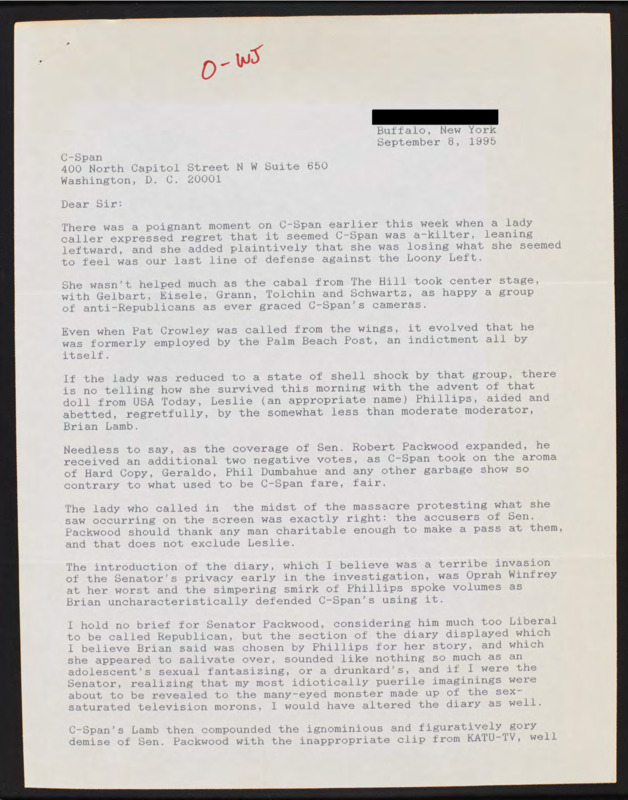 Letter to C-SPAN, n.d.; 29585