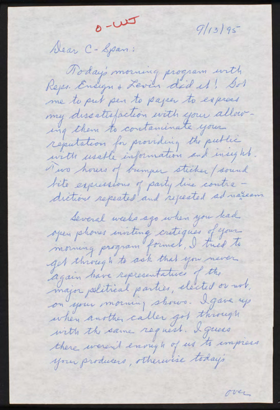 Expresses dissatisfaction in a program featuring two Representatives and suggests having "objective experts" on instead.