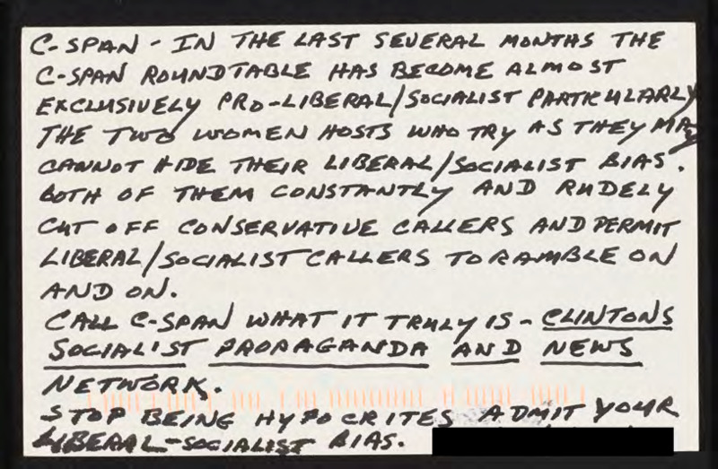 Letter to C-SPAN, 1995-09-05; 32503