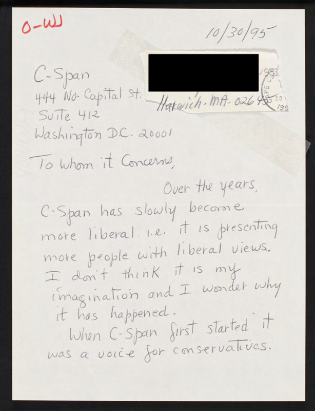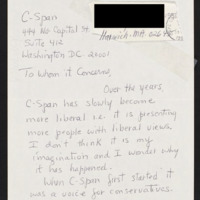 Accuses C-SPAN of becoming more biased toward liberals and questions why.