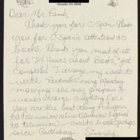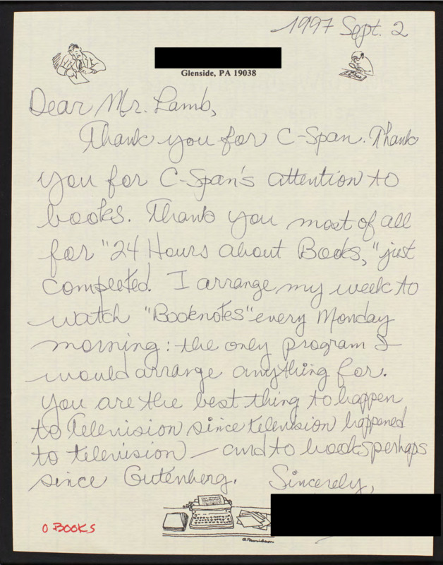 Thanks C-SPAN for "About Books" and praises Booknotes.