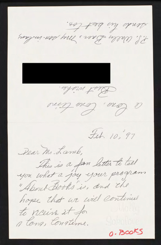 - Letter to C-SPAN, 1997-02-10; 90049