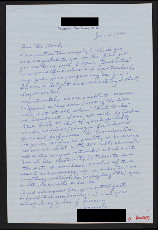 Letter to C-SPAN, 1997-01-06; 08108