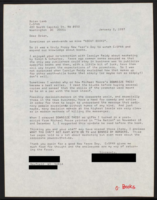 Praises C-SPAN's book programs and discusses their thoughts on books they've recently read.