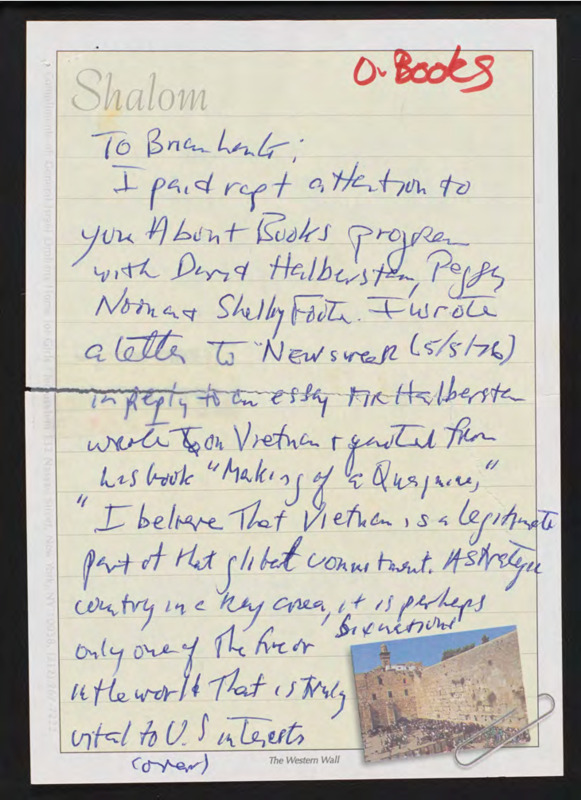 Responds to comments by one guest about Vietnam, discusses their brother who covered the Vietnam War, and talks about other books.
