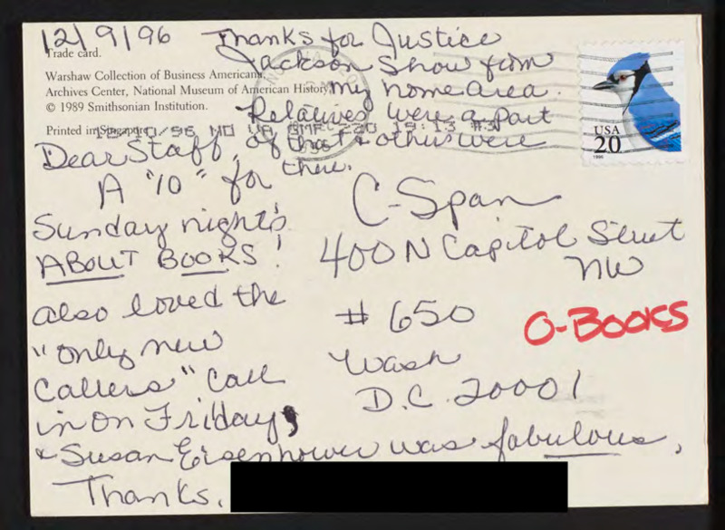 Letter to C-SPAN, 1996-12-09