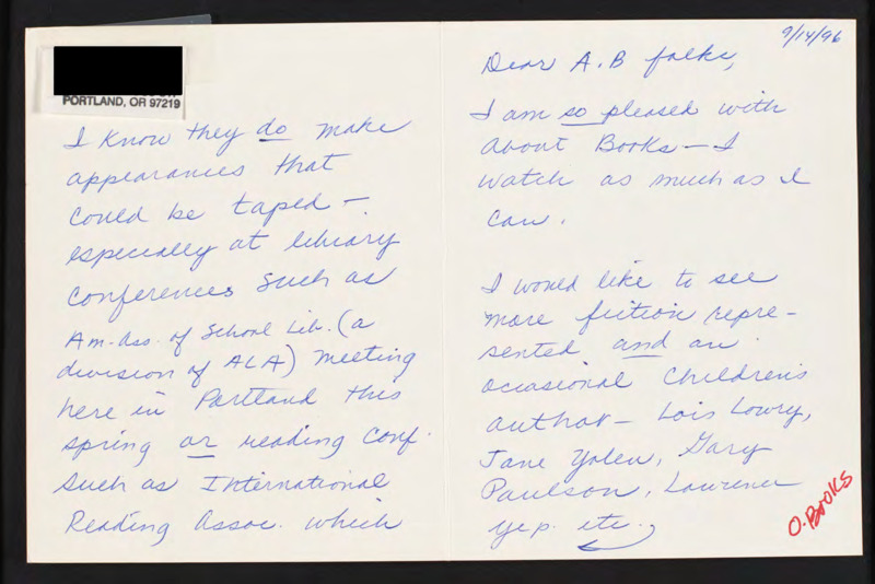 Letter to C-SPAN, 1996-09-14; 97219