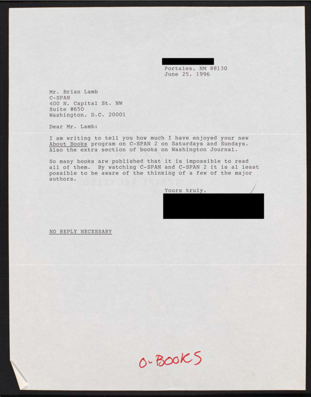 Letter to C-SPAN, 1996-06-25; 88130
