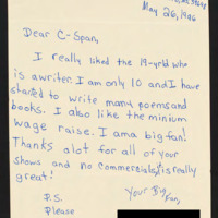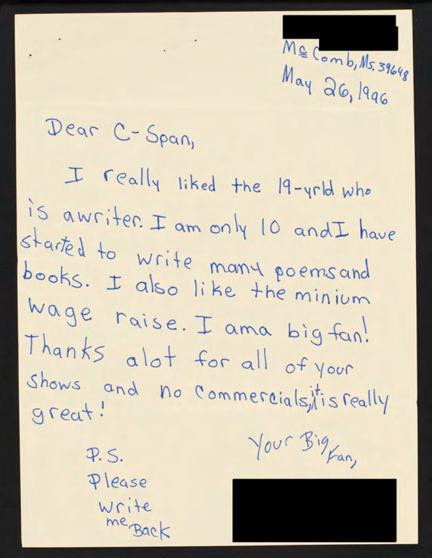 Discusses one writer she likes, her own writings, and expresses support for the minimum wage raise.