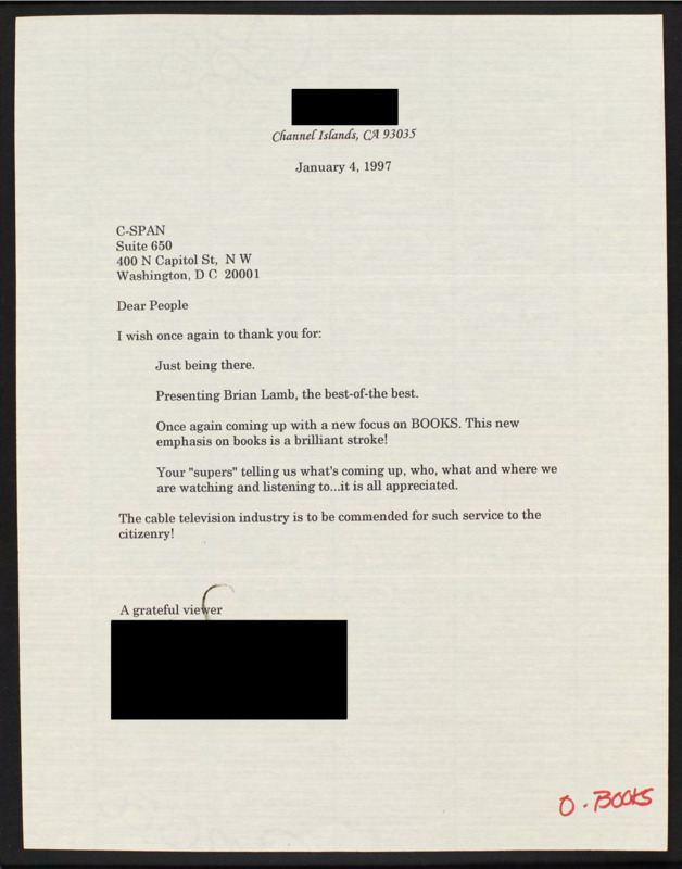 Letter to C-SPAN, 1997-01-04; 93035