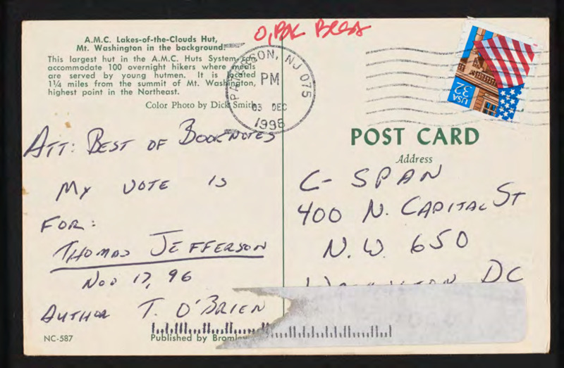 Selects a book on Thomas Jefferson for their "Best of Booknotes" vote.