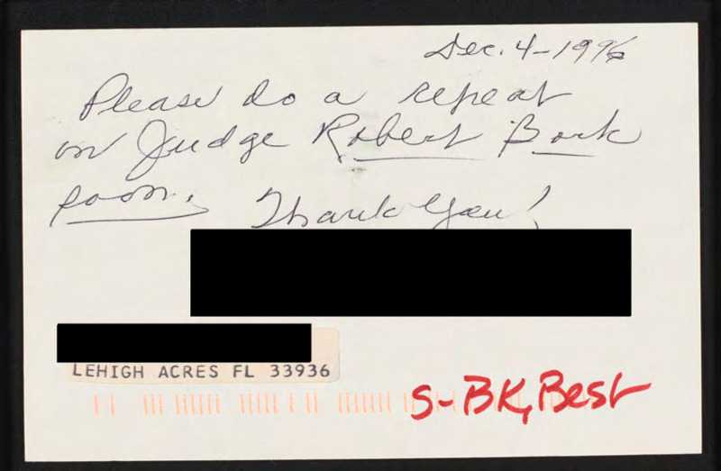 Requests a repeat on Robert Bork.