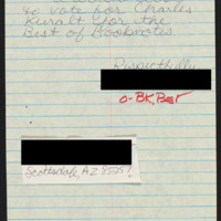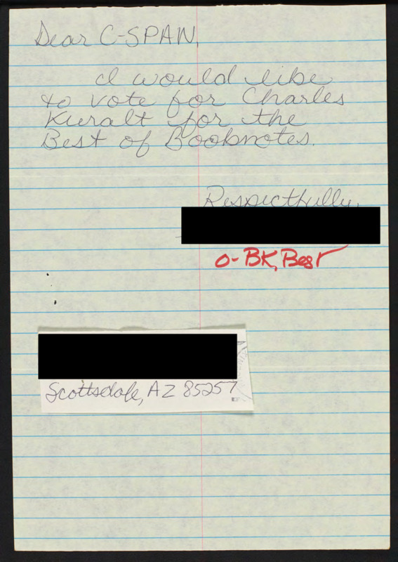 Names a book by Charles Kuralt as their "Best of Booknotes" vote.