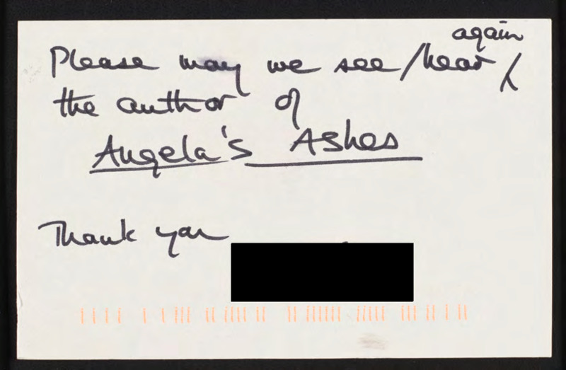 Requests C-SPAN rerun the Booknotes segment with Frank McCourt.