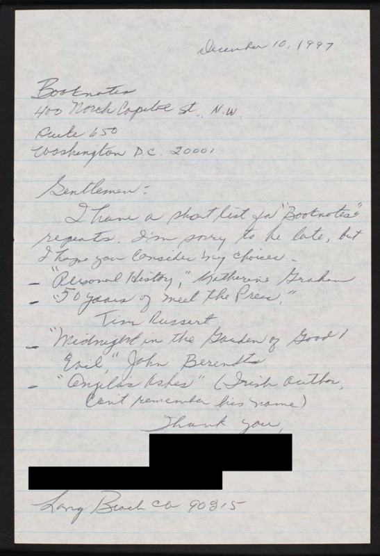 Letter to C-SPAN, 1997-12-10; 90815