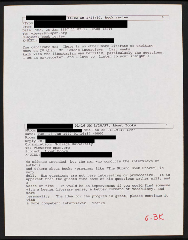 Criticizes Brian Lamb's interviews on Booknotes as "dull."