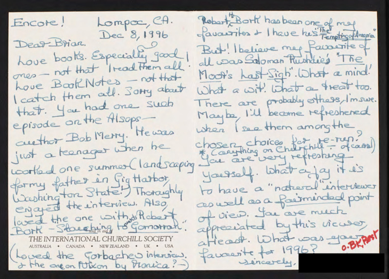 Letter to C-SPAN, 1996-12-08