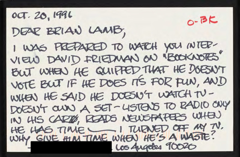 Letter to C-SPAN, 1996-10-20; 90020