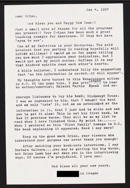 Letter to C-SPAN, 1997-01-04