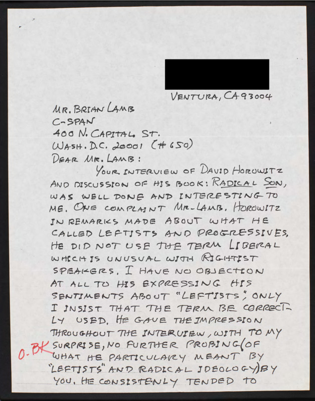 Praises a Booknotes interview with David Horowitz but takes issue with Horowitz's use of the word "leftist" versus "liberal."