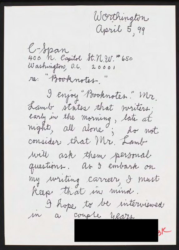 Letter to C-SPAN, 1999-04-05; 43085