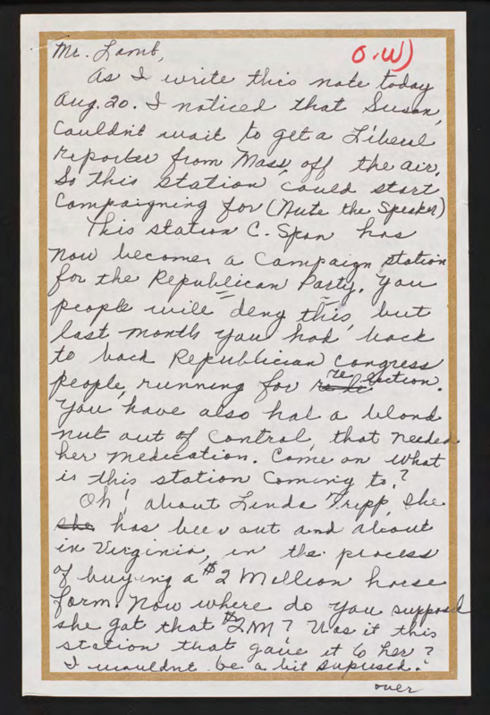 Letter to C-SPAN, n.d.