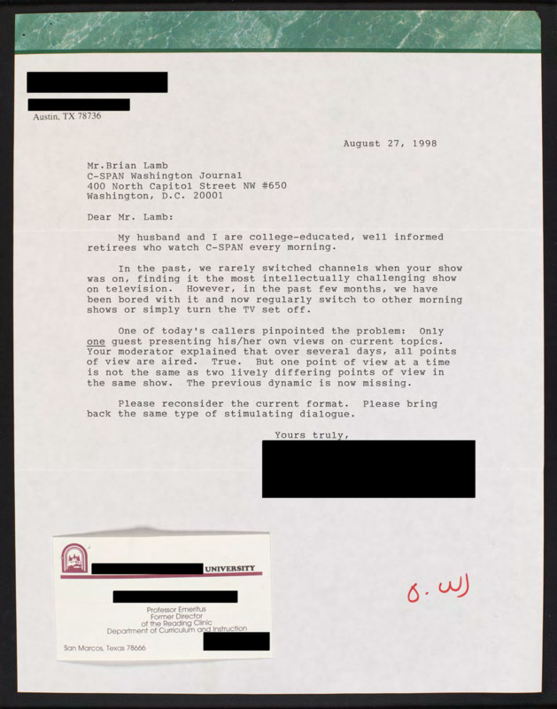 Letter to C-SPAN, 1998-08-27; 78736