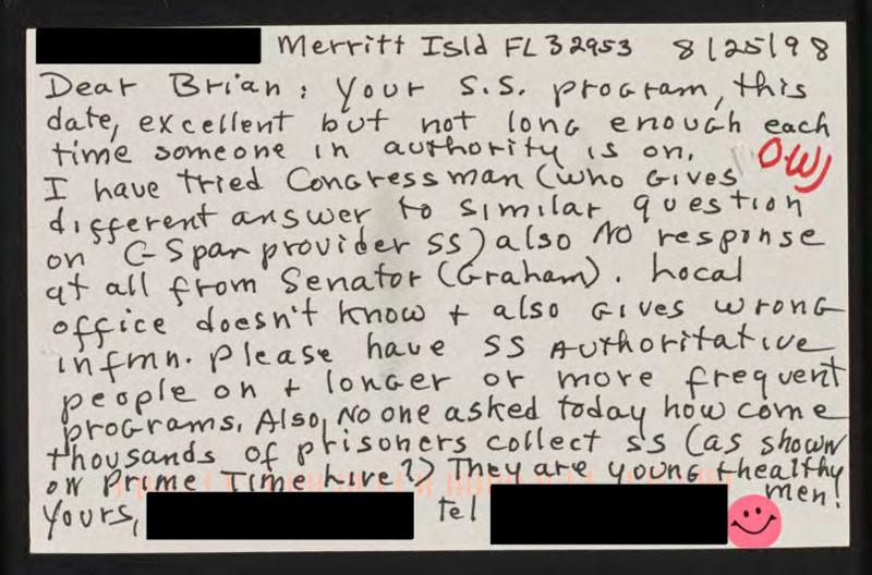 Praises a program C-SPAN hosted on Social Security and suggests it be on more frequently and longer.