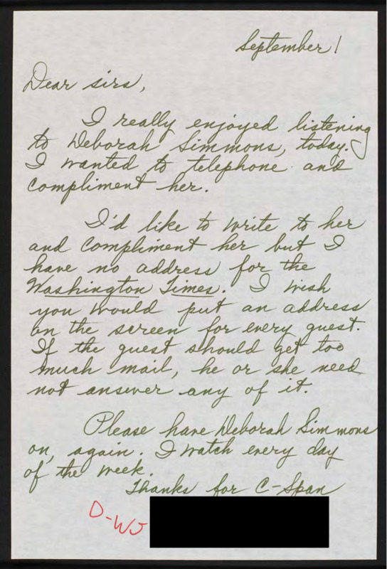 Letter to C-SPAN, 1998?-09-01