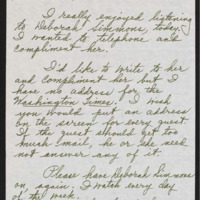 Writes that she would like to write and compliment a guest, then requests the address and hopes to have that same guest on again.