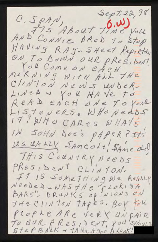Letter to C-SPAN, 1998-09-22; 22947