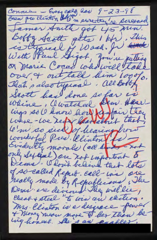 Expresses negative feelings about the Clintons and accuses C-SPAN of bias toward Democrats.