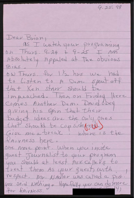 Accuses C-SPAN of bias toward Democrats and recommends C-SPAN as callers to treat guests with respect.