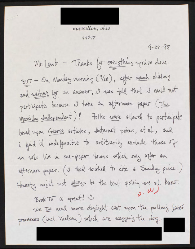 Letter to C-SPAN, 1998-09-28; 44647