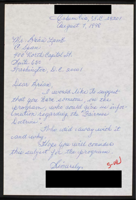 Suggests having a guest on to explain the "Fairness Doctrine."