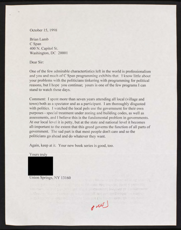 Letter to C-SPAN, 1998-10-15; 13160