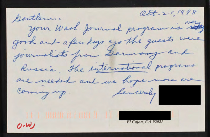 Expresses enjoyment of the international programs and hopes more will be shown.